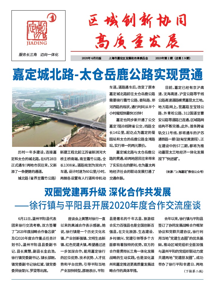 索引号: 00001434-9/2020-00221 发布机构: 区发展改革委 发文日期: 2020年07月01日 主题分类: 长三角一体化发展 关键词: 区域创新协同高质量发展2020第2期总第19期 来源:区发展改革委 发布时间:2020-07-01 浏览次数: 次 【字体:小 大】 长三角一体化工作简报第19期.pdf 分享到: