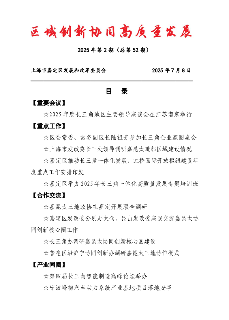 索引号: 00001434-9/2025-00000190 发布机构: 区发展改革委 发文日期: 2025年07月08日 主题分类: 长三角一体化发展 关键词: 区域创新协同高质量发展2025第2期总第52期 来源:区发展改革委 发布时间:2025-07-08 浏览次数: 次 【字体:小 大】 分享到: